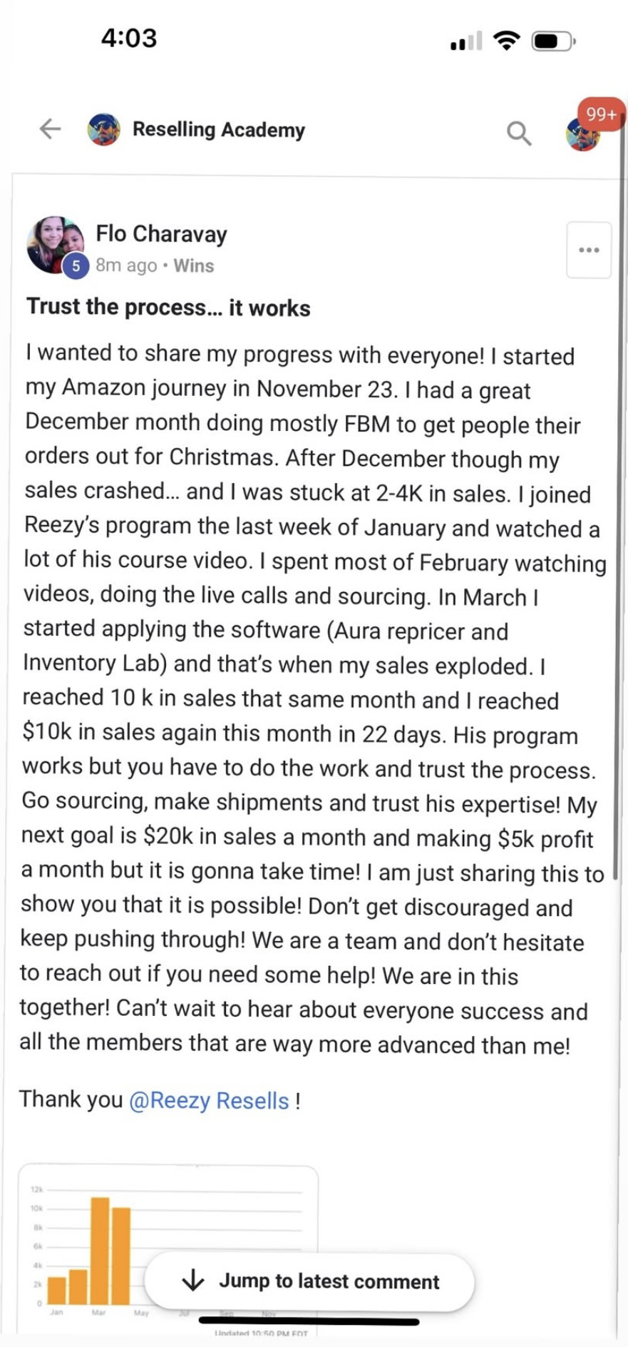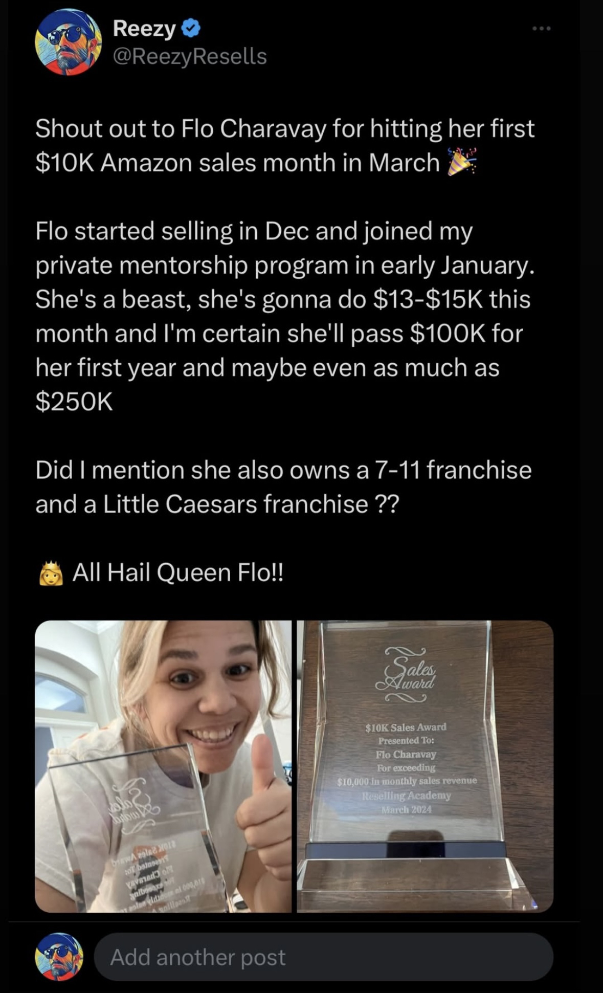 In her first year she was able to do $147k in Sales through the academy.