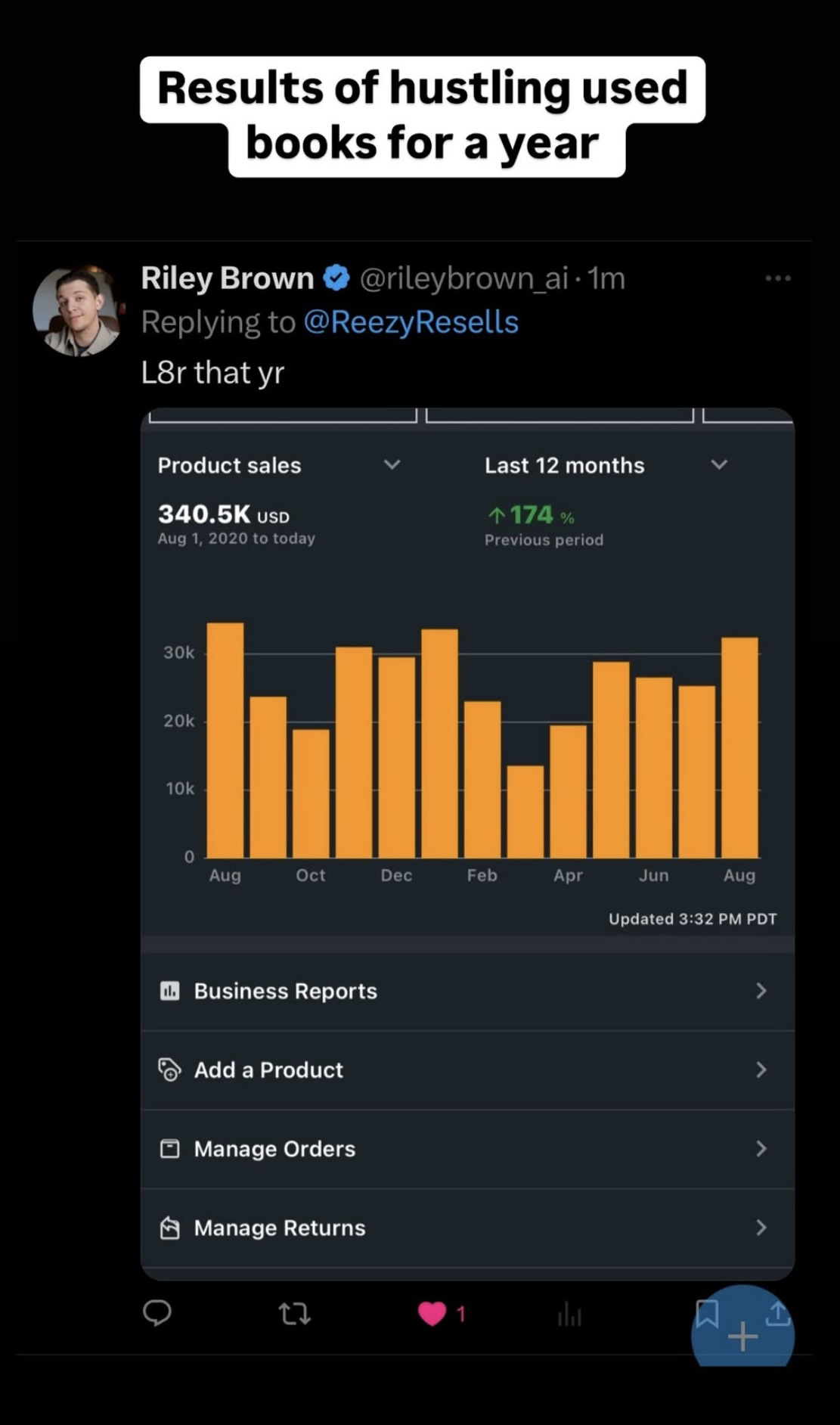 He started off slow then hit a 13k month and now on track to do over $150k in his first year.