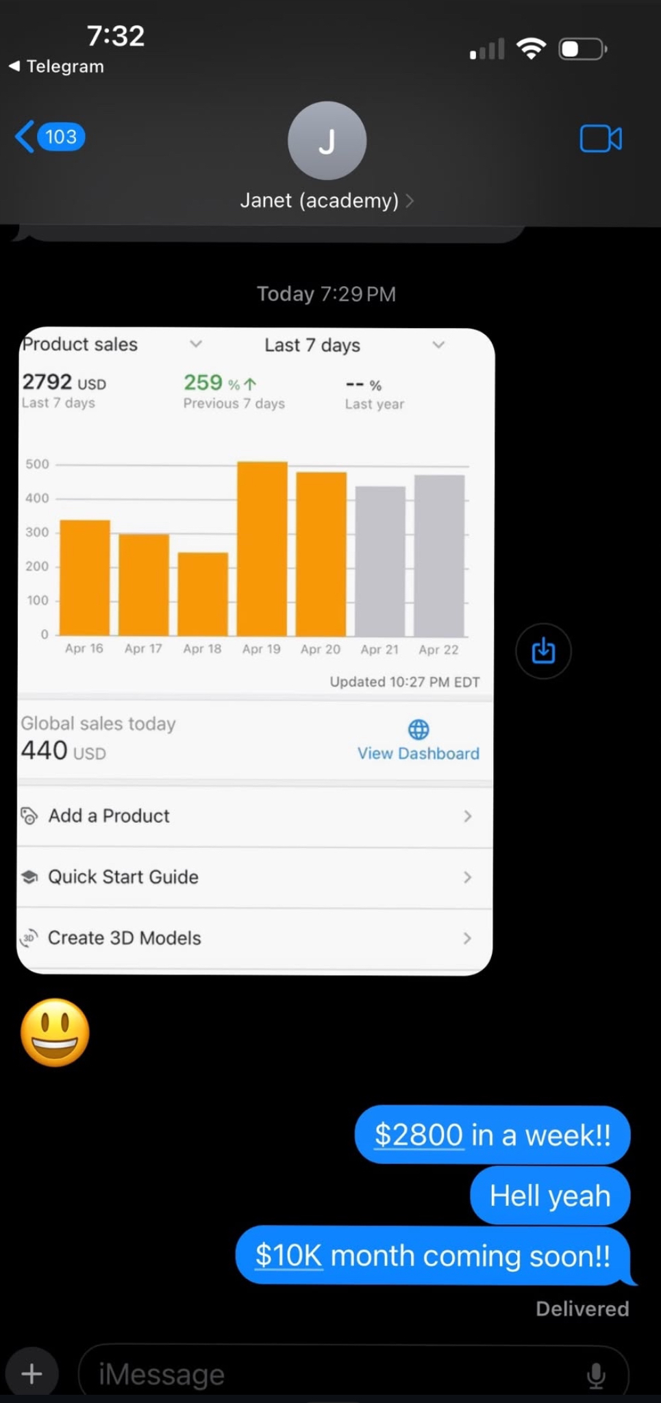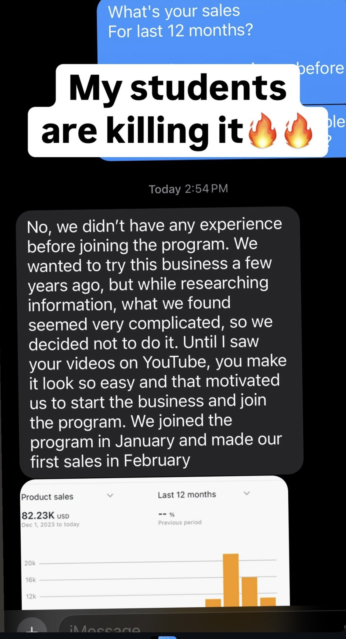 In her first year she was able to do $120k in Sales through the academy.