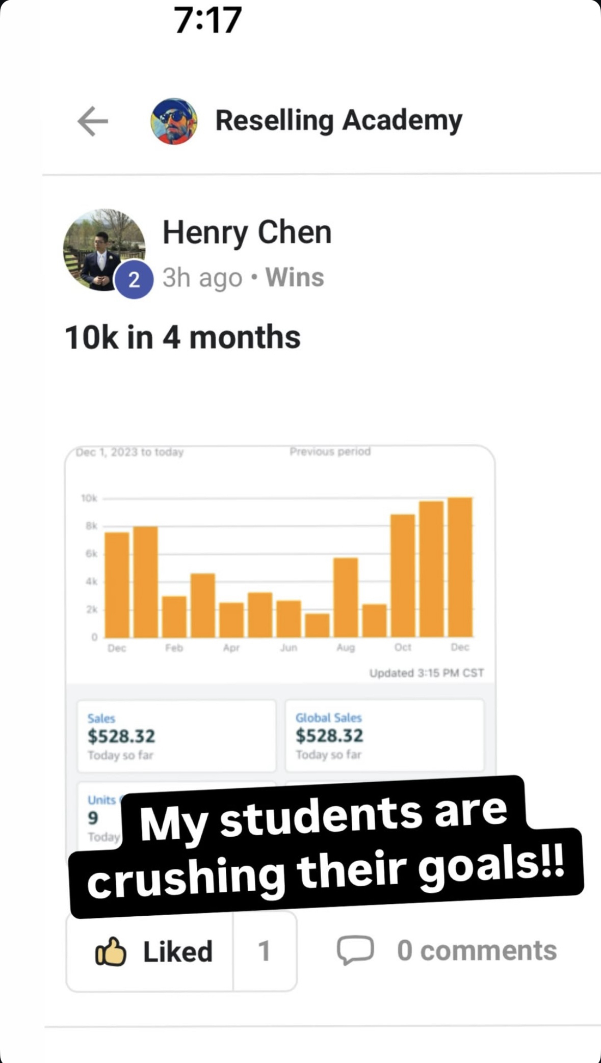 In his first year he was able to do $130+ (This year on pace for over $300k) in Sales through the academy.